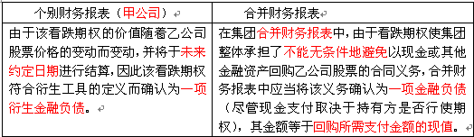 问题 甲公司为乙公司的母公司,其向乙公司的少数股东签出一份在未来6个月后以乙公司普通股为基础的看跌期权,如果6个月后乙公司股票价格下跌,乙公司少数股东有权要求甲公司无条件的以固定价格购入乙公司少数股东所持有的乙公司股份。