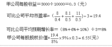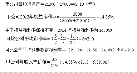 问题 (2014)甲公司是一家尚未上市的高科技企业,固定资产较少,人工成本占销售成本的比重较大。为了进行以价值为基础的管理,公司拟采用相对价值评估模型对股权价值进行评估:   (1)甲公司2013年度实现净利润3000万元,年初股东权益总额为20000万元,年末股东权益总额为21800万元,2013年股东权益的增加全部源于利润留存。公司没有优先股,2013年年末普通股股数为10000万股,公司当年没有增发新股,也没有回购股票。预计甲公司2014年及以后年度的利润增长率为9%,权益净利率保持不变。   (2)甲公司选择了同行业的3家上市公司作为可比公司,并收集了以下相关数据: 要求:(1)使用市盈率模型下的修正平均市盈率法计算甲公司的每股股权价值。  要求:(2)使用市净率模型下的修正平均市净率法计算甲公司的每股股权价值。  要求:(3)判断甲公司更适合使用市盈率模型和市净率模型中的哪种模型进行估值,并说明原因。