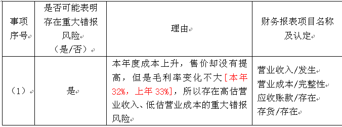 选项 A注册会计师在审计工作底稿中记录了甲公司的财务数据,部分内容摘录如下:金额单位:万元 要求:针对资料一事项,结合资料二,假定不考虑其他条件,指出资料一所列事项是否可能表明存在重大错报风险。如果认为可能表明存在重大错报风险,简要说明理由,并说明该风险主要与哪些财务报表项目(营业收入、营业成本、销售费用、管理费用、公允价值变动收益、投资收益、营业外收入。。。)的哪些认定相关(不考虑税务影响)。