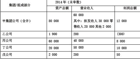 甲集团公司是ABC 会计师事务所的常年审计客户,主要从事化妆品的生产、批发和零售。A 注册会计师负责审计甲集团公司2014 年度财务报表,确定集团财务报表...