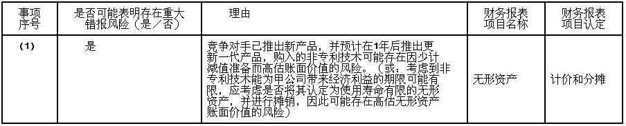 选项 A注册会计师在审计工作底稿中记录了已实施的相关实质性程序:对于外购无形资产,通过核对购买合同等资料,检查其入账价值是否正确。 要求: (1)针对资料一的事项(1),结合资料二,假定不考虑其他条件,指出资料一所述事项是否可能表明存在重大错报风险。如果认为存在,简要说明理由,并分别说明该风险主要与哪些财务报表项目(仅限于长期股权投资、无形资产和预计负债)的哪些认定相关。 (2)针对资料三的实质性程序,假定不考虑其他条件,指出上述实质性程序与根据资料一(结合资料二)识别的重大错报风险是否直接相关。如果直接相关,指出对应的是哪一项(或者哪几项)识别的重大错报风险,并简要说明理由。