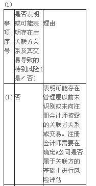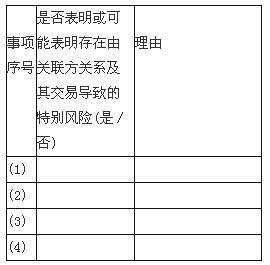 问题 A注册会计师负责对X公司2015年度财务报表实施审计。A注册会计师在审计工作底稿中记载了所了解的X公司及其环境。其中,与关联方关系及其交易相关的部分内容摘录如下: (1)2015年11月,X公司与A公司签订了为期三年的财务支持协议,包括为A公司2016年初的一笔长期借款提供担保。A公司不在X公司提供的关联方清单中。 (2)根据2015年5月到期的房屋租赁协议,X公司以市场价格将部分厂房出租给关联企业B公司。2015年2月,双方在协议中增加了自3月份起降低租金60%的补充条款。 (3)X公司与Y公司签订的长期销售合同无法获得控股股东c公司的最终批准,导致X公司销售经理频繁更换,仅2015年下半年就更换三次。 (4)董事会会议记录显示,由于管理层担心按规定披露关联方可能会泄露某些重要管理层人员家庭成员的信息,董事会同意本年暂不披露部分关联方关系。 (5)X公司将与D公司发生的一笔大额关联方交易披露为公平交易。A注册会计师能够确定交易是按照市场价格执行的,但不能确定交易的其他条款和条件是否与非关联方之间通常达成的交易条款相同。 (6)由于管理层拒不提供A注册会计师认为所需的资料,项目组无法识别X公司的最终控制方。 要求: (1)逐一针对情况(1)~(4),指出是否表明或可能表明X公司存在由关联方关系及其交易导致的特别风险,简要说明理由,并将答案直接填列在下表中。 (2)分别指出
