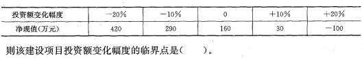 某建设项目以财务净现值为指标进行敏感性分析的有关数据见下表。 A. +8.13% B. +10.54% C. +12.31% D. +16.37%