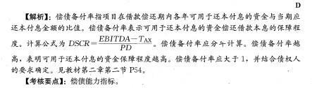 选项 A.可用于偿还利息的资金与当期应付利息 B.可用于还本付息的资金与当期应付利息 C.可用于偿还利息的资金与当期应还本付息金额 D.可用于还本付息的资金与当期应还本付息金额