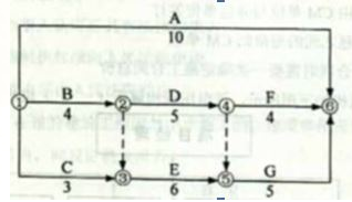 解析 本题考查的是网络计划时间参数的计算。D 工作最早开始时间4,最晚开始时间5,最早完成时间9,总时差5-4=1,F工作最早开始时间9,D工作自由时差9-9=0。参见教材P125。