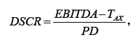 解析 本题考核的是偿债备付率的计算公式。 , 其中EBITDA 为息税、折旧及摊销前利润;TAX为企业所得税;PD 为应还本付息金额,包括还本金额和计入总成本费用的全部利息。