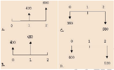在资金时间价值的作用下,下列现金流量图(单位:万元)中,有可能与第2 期末1000 万元现金流入等值的是()。