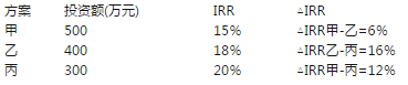 某项目有甲、乙、丙三个投资方案,各方案的投资额及内部收益率见下表。若已知基准折现率为10%,则各方案净现值由大到小排序为(  )。 A.甲,乙,丙 ...