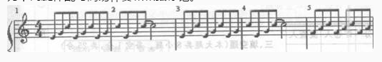 解析 前两小节用根音八度加l35柱式和弦;中间两小节也是用根音八度加351柱式和弦;后两小节用根音八度加461柱式和弦。和弦标记T—T6一S。