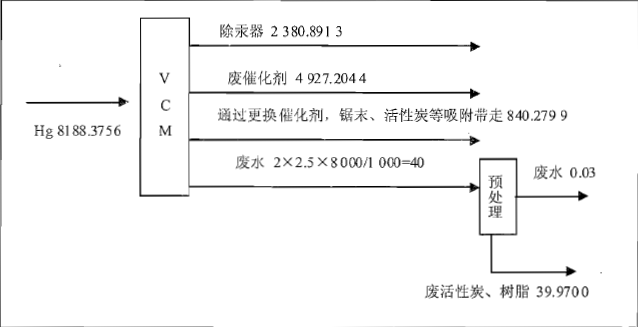 问题 某离子膜烧碱和聚氯乙烯(PVC)项目位于规划工业区。离子膜烧碱装置以原盐为原料生产氯气、氢气和烧碱。为使离子膜装置运行稳定,在厂区设置三台容积为50m3的液氯储罐,液氯储存单元属于重大危险源。 聚氯乙烯生产过程为HCl与乙炔气在HgCl2催化剂作用下反应生成氯乙烯单体(VCM),再采用悬浮聚合技术生产PVC,全年生产8000h。 VCM生产过程中使用HgCl2催化剂100.8t/a(折汞8188.3756kg/a)、活性炭151.2t/a,采用活性炭除汞器除去粗VCM精馏尾气中的汞升华物(折汞2380.8913kg/a)。VCM洗涤产生的盐酸经处理返回VCM生产系统,碱洗产生的含汞废碱水2.5m3/h,总汞浓度为2.0mg/L,废催化剂中折汞4927.2044kg/a,更换催化剂卸泵产生的少量废水经锯末、活性炭等吸附带走840.2799kg/a,废水排入含汞废碱水预处理系统,含汞废碱水经化学沉淀、三段活性炭吸附、三段离子交换树脂预处理,总汞浓度0.0015mg/L。 废活性炭,树脂更换带走汞39.9700kg/ao预处理合格的废水与厂内其他废水混合、经处理后排至工业区污水处理厂,含汞废物统一送催化剂生产厂家回收利用。 【问题】 1.给出VCM生产过程中总汞的平衡图。 2.说明本项目废水排放监控应考虑的主要污染物及监控部位。 3.识别液氯储存单元的风险类型,给出风险源项分析内容。 4.在VCM生产单元氯元素投入、产出平衡计算中,投入项应包括的物料有哪此 5.本项目的环境空气现状调查应包括哪些特征污染因子