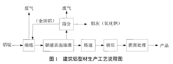 某公司拟在工业园区新建6 X 10^4 t/a 建筑铝型材项目,主要原料为高纯铝链。生产工艺见图1 。 采用天然气直接加热方式进行铝链熔炼, 熔...
