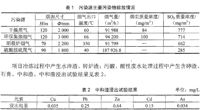 选项 As、Pb。工业水循环率由91.7%增至92.5%。 改扩建工程完成后,生产过程中的废气主要来源于干燥尾气、环保集烟烟气(通 过环保集烟罩收集闪速炉等冶金炉的泄漏烟气)、阳极炉烟气、制酸脱硫尾气4 个高架排放源。其污染源主要污染物排放情况见表1 。 【问题】 1.计算环境空气评价等级、确定评价范围和环境空气现状监测点数。各污染源S02 最大地面浓度及距离详见表3。 2. 干燥尾气、环保集烟烟气、硫酸脱硫尾气是否达标排放 3. 全年工作时间为8000 小时,问项目是否满足S02 总量控制要求 4. 根据浸出试验结果,说明中和渣是否为危险废物。运营期固体废物应如何处置 5. 根据判定,该项目地下水评价等级为一级。地下水评价过程中如何开展地下水污染源调查