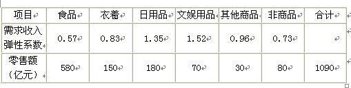 某地区基期各类商品零售额和需求的收入弹性系数如下表所示: 表 各类商品的零售额和需求收入弹性系数 设该地区居民收入在预测期内将增长20%。试...