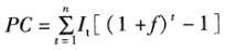式中,PC为涨价预备费It为第t年的工程费用,f为建设期价格上涨指数,n为建设期,t为年份。