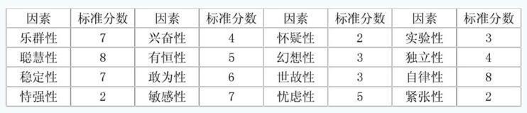 解析 测验的16种人格因素中,1-3分为低分,8-10分为高分。A容易紧张困扰(紧张性2分,低分,该被试心平气和)。B严肃、审慎、寡言(看F兴奋性,4分为偏中等分,不能选)。C抽象思维能力弱,这跟人格没关系,表中也看不出来。D谦虚、顺从、通融(看E恃强性,2分,正确。)难度真的好大,出题人真狠心。