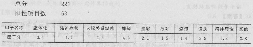 问题 下面是某求助者SCL-90测验结果。 从统计结果可以算出,该求助者的阳性项目均分约为()。