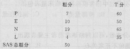 解析 该求助者的测验结果表明:N为6,属于典型型,高分表示常常焦虑。因此,该求助者属于典型型。 第一,根据题意要求,需要关注的是:EPQ的N量表,SAS。 第二,以下为该题的要点参考。 1.EPQ属于人格测验,EPQ属于人格测验.E(内向—外向),分数高表示人格外向,情绪易冲动;分数低表示人格内向,情绪较稳定。N(神经质)。反应的是正常行为,并非指神经症,分数高表现常常焦虑;分数低表现为稳重和自我控制。P(精神质),并非暗指精神病,分数高表现的可能是孤独,不关心他人,难以适应环境;分数低表现的可能是与人相处亲和,态度温和。 2.根据标准差的分布,规定各量表的T分在38.以下或61.以上为典型型,38.5~43.或56.7~61.为倾向型,43.3~56.7分之间为中间型。 3.根据中国常模的结果,SAS标准分的分界值为50分,50~59分为轻度焦虑,60~69分为中度焦虑,69分以上为重度焦虑。 4.SAS的粗分转化成标准分为粗分*1.25后取整数。