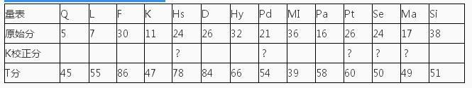 请根据案,回答88-90题。 下面是某求助者的MMPI测验结果: 神经衰弱量表的K校正分应当是(  )。A.28 B.30 C.3...