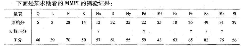解析 5个量表的原始分需要加K分,Ma( +0. 2K)。K是14分,故Ma的校正分是 34分。