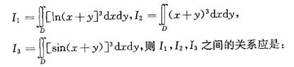 设平面闭区域D由x=0,y=0,x+y=1/2,x+y=1 所围成。A.I123 B. I132C. I321 D. I312