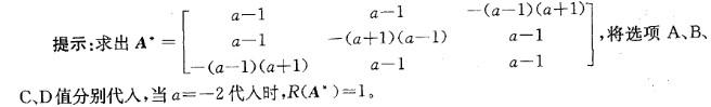 问题 已知A的伴随矩阵的秩为1,则a= A.-2 B.-1 C. 1 D.2