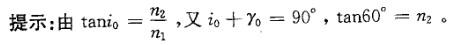 —束自然光从空气投射到玻璃表面上(空气折射率为1),当折射角为30°时,反射光是完全偏振光,则此玻璃板的折射率等于: