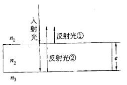 问题 波长为λ的单色平行光垂直入射到薄膜上,已知n12>n3,如图所示。则从薄膜上、下两表面反射的光束①与②的光程差是: