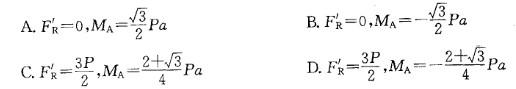 —等边三角形的边长为a,沿其边缘作用有大小均为P的三个力,方向如图所示。该力系向点A简化的主矢FR'和主矩MA(以逆时针向为正)的大小分别为: