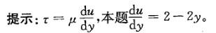 某平面流动的流速分布方程为ux=2y-y2,流体的动力粘度为μ=0. 8 X 10-3 Pa?s,在固壁处y = 0。距壁面y= 7. 5cm处的粘性切应...