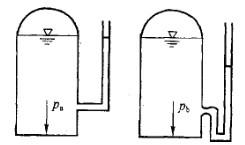 问题 盛水容器a和b的上方密封,测压管水面位置如图所示,其底部压强分别为pa和pb。若两容器内水深相等,则pa和pb的关系为: A. pa>pb B. pab C. pa=pb D.无法确定