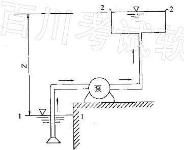 如图所示水泵吸水系统,水箱与水池液面高差Z=30m,断面1-1至1-1的总水头损失hw=3mH2O ,则水泵的扬程H至少应为:A. 30mH2O ...