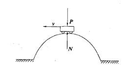 问题 汽车重力P,以匀速v驶过拱桥,如图所示。在桥顶处,桥面中心线的曲率半径为R,在此处,桥面给汽车约束反力N的大小等于: