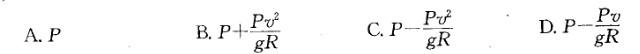 汽车重力P,以匀速v驶过拱桥,如图所示。在桥顶处,桥面中心线的曲率半径为R,在此处,桥面给汽车约束反力N的大小等于: