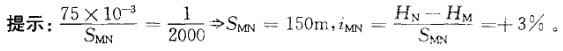 在1/2000地形图上量得M、N两点距离为dMN= 75mm,高程为HM= 137. 485m、 HN= 141. 985m,则该两点间的坡度iMN为: ...