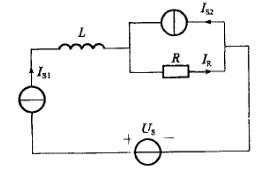 解析 提示:因为此题中的电源均为直流量,则电感线圈可用作短路处理,原电路图等效为图8-30,但该电路仍旧符合节点电流关系。因此在电路的节点a有IS1 +IS2 =IR
