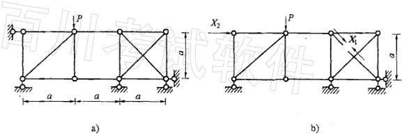 图a)所示桁架,EA=常数,取图b)为力法基本体系,则力法方程系数间的关系为:A. δ2211,δ12>0 B.δ22>δ11,δ12>0C....
