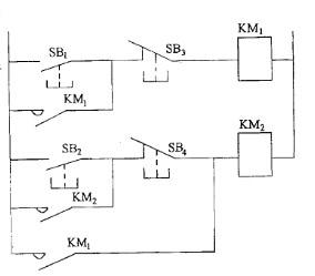 图示的控制电路中,SB为按钮,KM为接触器,若按动SB2,试判断下列哪个结论正确?A.接触器KM2通电动作后,KM1跟着动作B.‘只有接触器K...