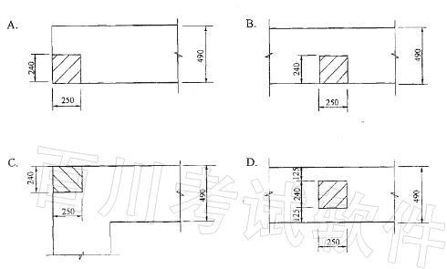 问题 如图所示,截面尺寸为240mmX250mm的钢筋混凝土柱,支承在490mm厚的砖墙上,墙采用MU10砲块、M2.5混合砂浆砌筑,可能最先发生局部受压破坏的是哪个图所示的砖墙?