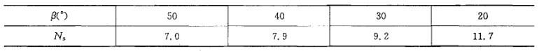 若土的内摩擦角φ=5°,坡角β与稳定因数Ns的关系如表所示。当现场土坡高度h= 4. 6m,粘聚力c=10kPa,土的重度γ=20kN/m3,基坑...