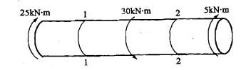 解析 提示:用截面法(或直接法)可求出截面1-1处扭矩为25kN?m,截面2-2处的扭矩为-5kN?m。