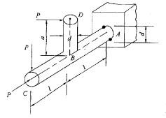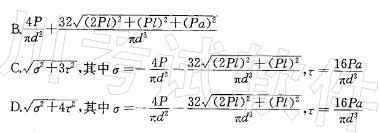 问题 图示钢制竖直杆DB与水平杆AC刚接于B,A端固定,P、l、a与圆截面杆直径d为已知。按第三强度理论,相当应力σr3为: