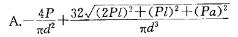 图示钢制竖直杆DB与水平杆AC刚接于B,A端固定,P、l、a与圆截面杆直径d为已知。按第三强度理论,相当应力σr3为: