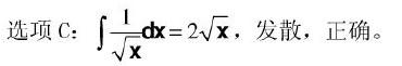 解析 解:选C。 逐项排除: 选项A:在x=0处无定义,错误。 选项B:错误。 选项D:发散,错误。