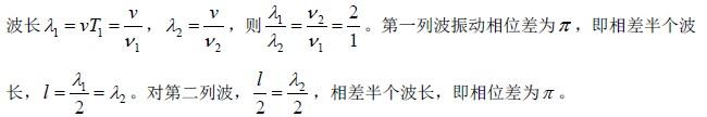 问题 两列频率不同的声波在空气中传播,已知频率ν1= 500Hz 的声波在其传播方向相距为ι的两点振动相位差为π ,那么频率ν1=1000Hz 的声波在其传播方向相距为ι/2的两点的相位差为: (A)π / 2 (B)π (C) 3π / 4 (D) 3π / 2
