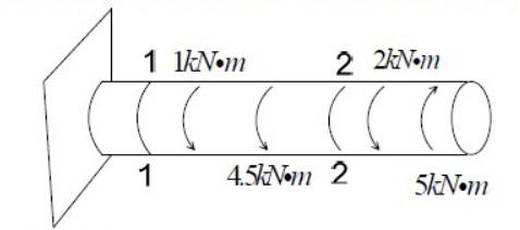 如图所示,左端固定的直杆受扭转力偶作用,在截面1-1 和2-2 处的扭矩为:(A)12.5kN?m,?3kN?m(B)?2.5kN?m,?3k...