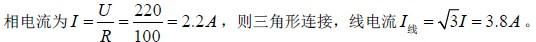 问题 有三个100Ω 的线性电阻接成Δ 形三相对称负载,然后挂接在电压为220V 的三相对称电源上,这时供电线路上的电流应为: (A)6.6A (B)3.8A (C)2.2A (D)1.3A