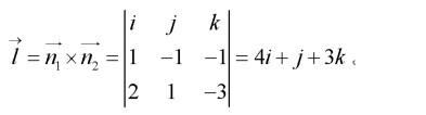 解析 直线L是平面χ - y- z +1 = 0和平面2χ+ y - 3z + 4 = 0的交线,直线L的方向向量