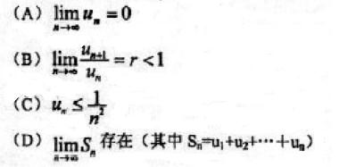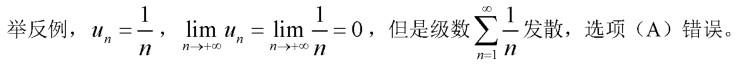 解析 选项(B)为比值审敛法,但是必须是正项级数才是正确的。 选项(D)是充要条件,级数收敛的定义。