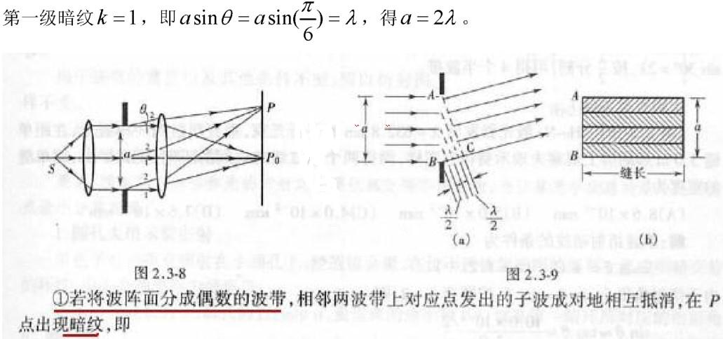 问题 波长为λ的单色平行光垂直入射到一狭缝上,若第一级暗纹的位置对应的衍射角为,则缝宽的大小为