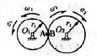 问题 图示两个相啮合的齿轮,A、B分别为齿轮O1,O2上的啮合点,则A、B两点的加速度关系是: